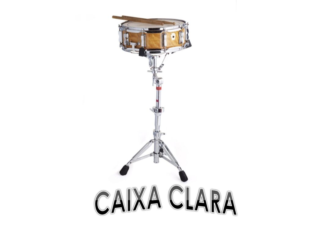 A caixa clara é um tambor pequeno de percussão. Peles sintéticas ou de bezerro esticam em aro. Nervuras dão som seco e cortante.