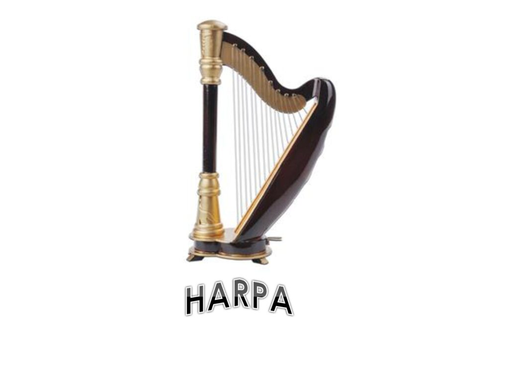A harpa é um instrumento de cordas verticais. Triângulo de madeira sustenta 47 cordas. Pédalas alteram afinação.